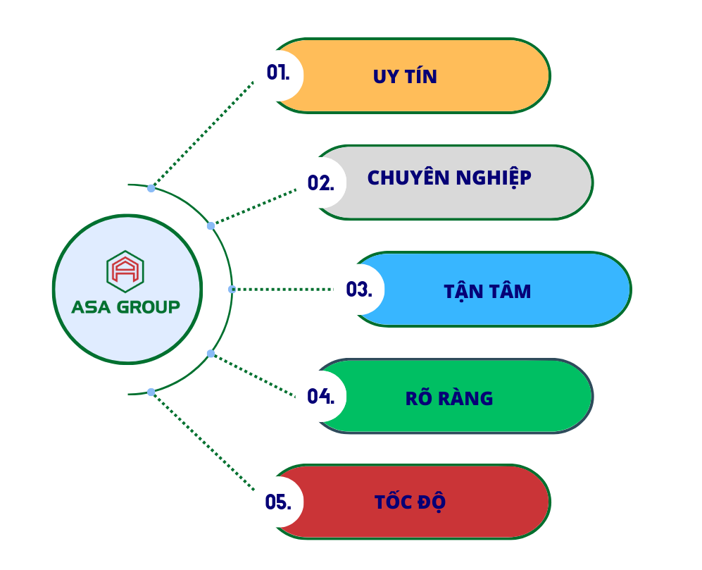 XEM THÊMASA GROUP lấy “Con người” làm trọng tâm, chữ ‘’Tâm’’ làm nòng cốt, xây dựng chữ “Tín” với khách hàng, “Chất Lượng” trên từng sản phẩm và “Giá Thành” hợp lý với tinh thần phục vụ khách hàng tới mức cao nhất. Với phương châm “Lấy sự hài lòng khách hàng làm thước đo cho sự thành công của ASA GROUP”